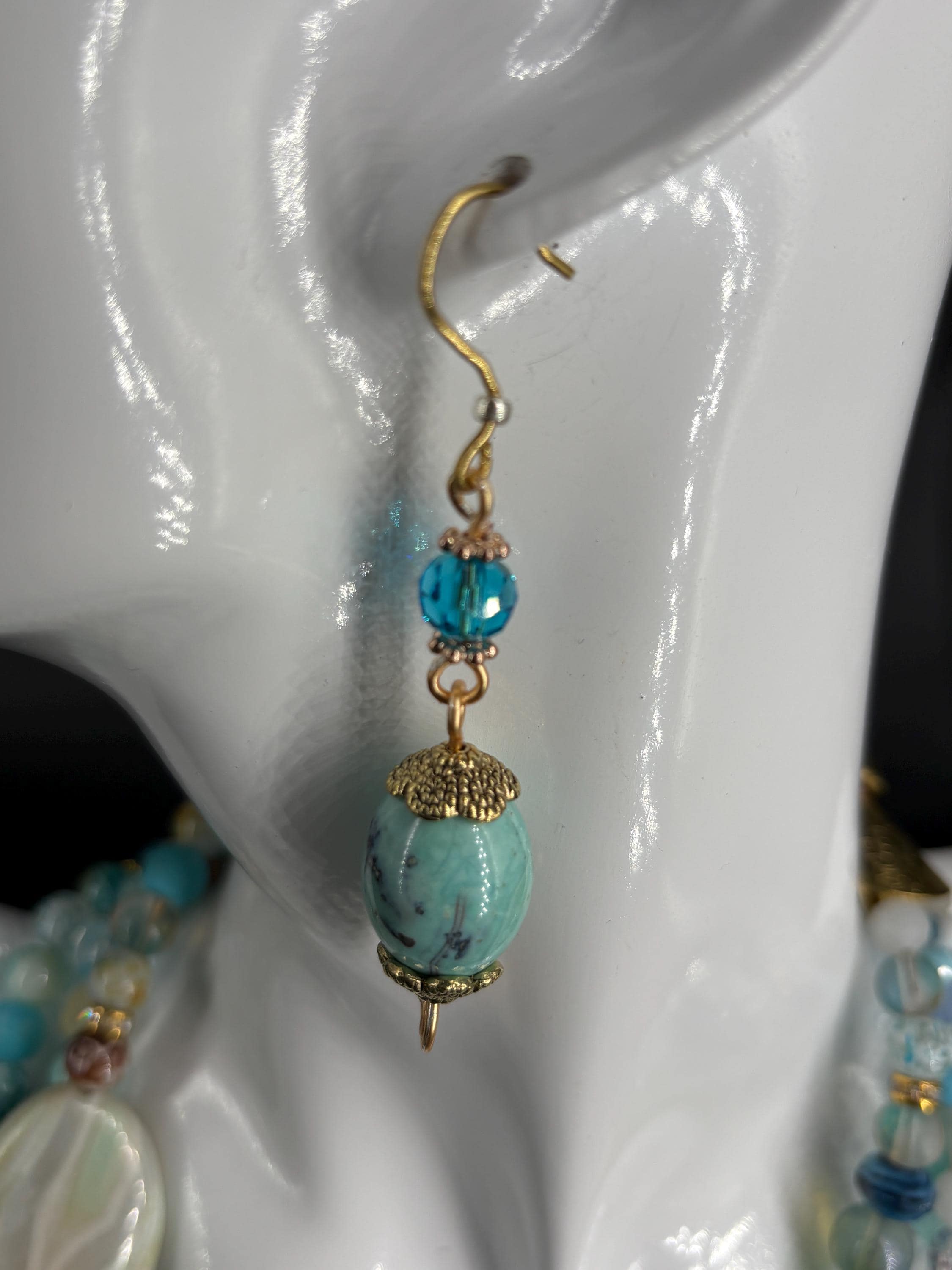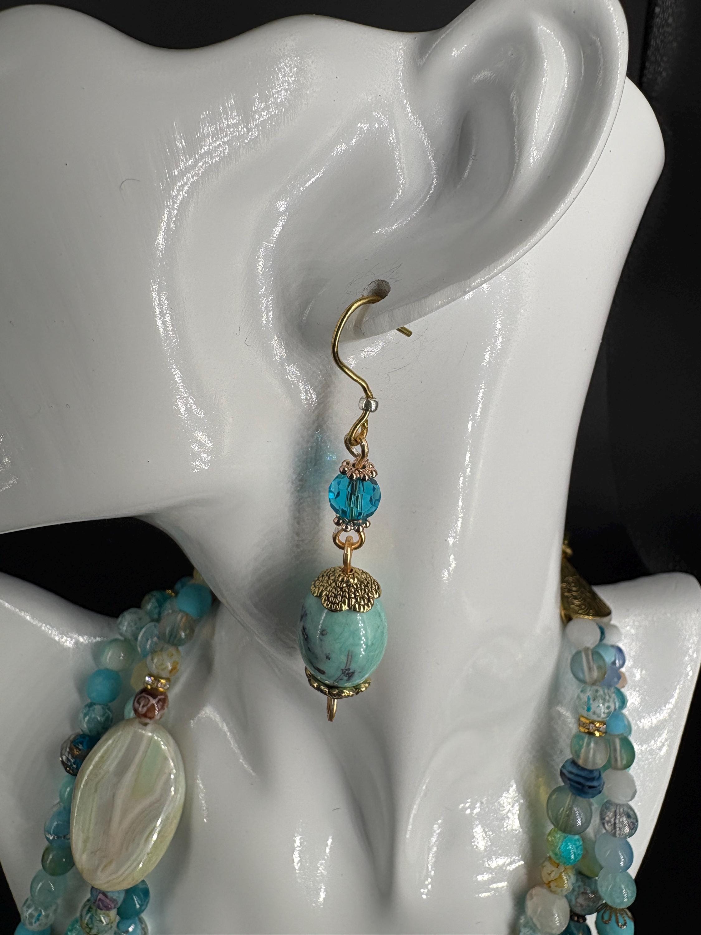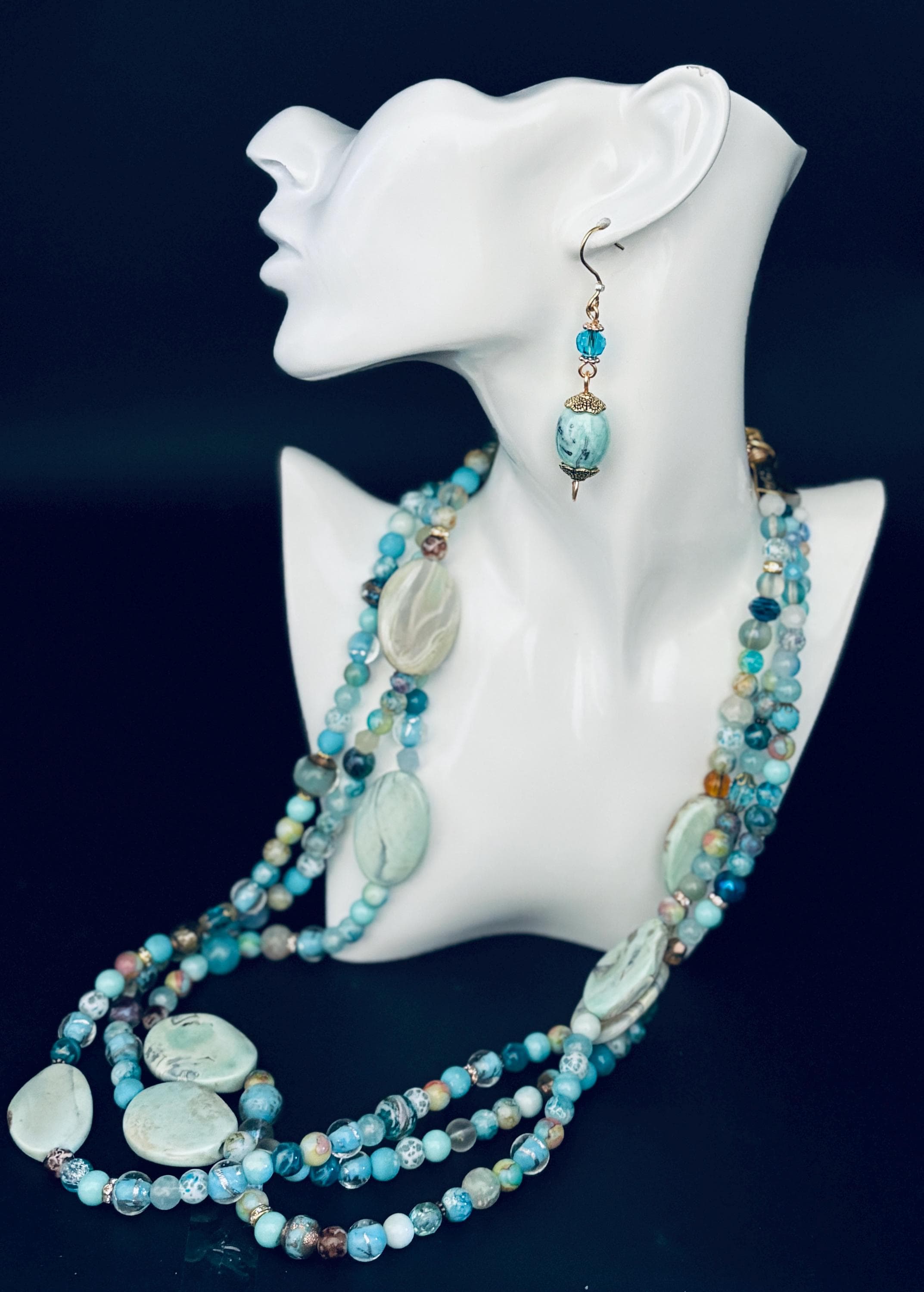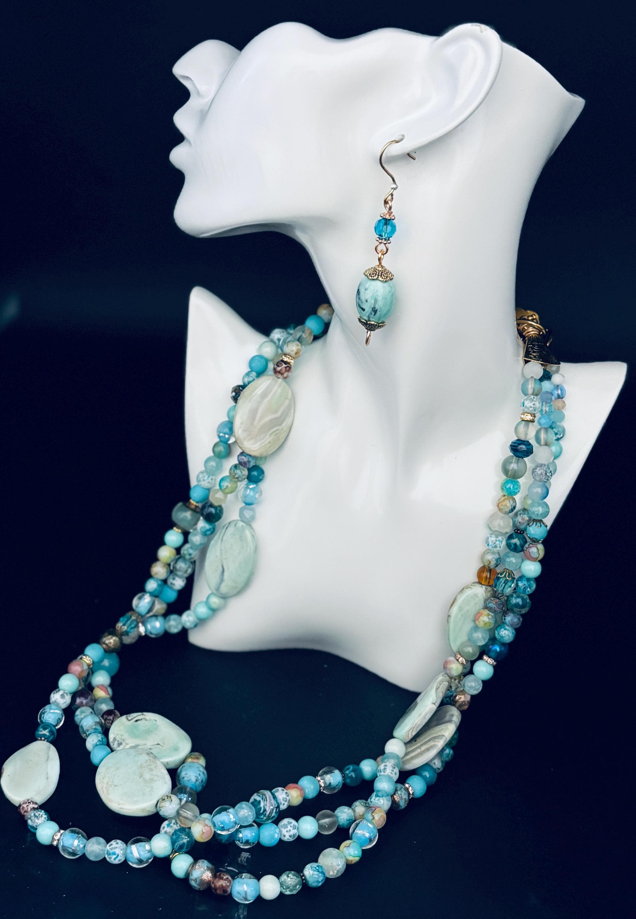 Bohemian Beaded Necklace & Earrings Set, Turquoise Agate Jewelry