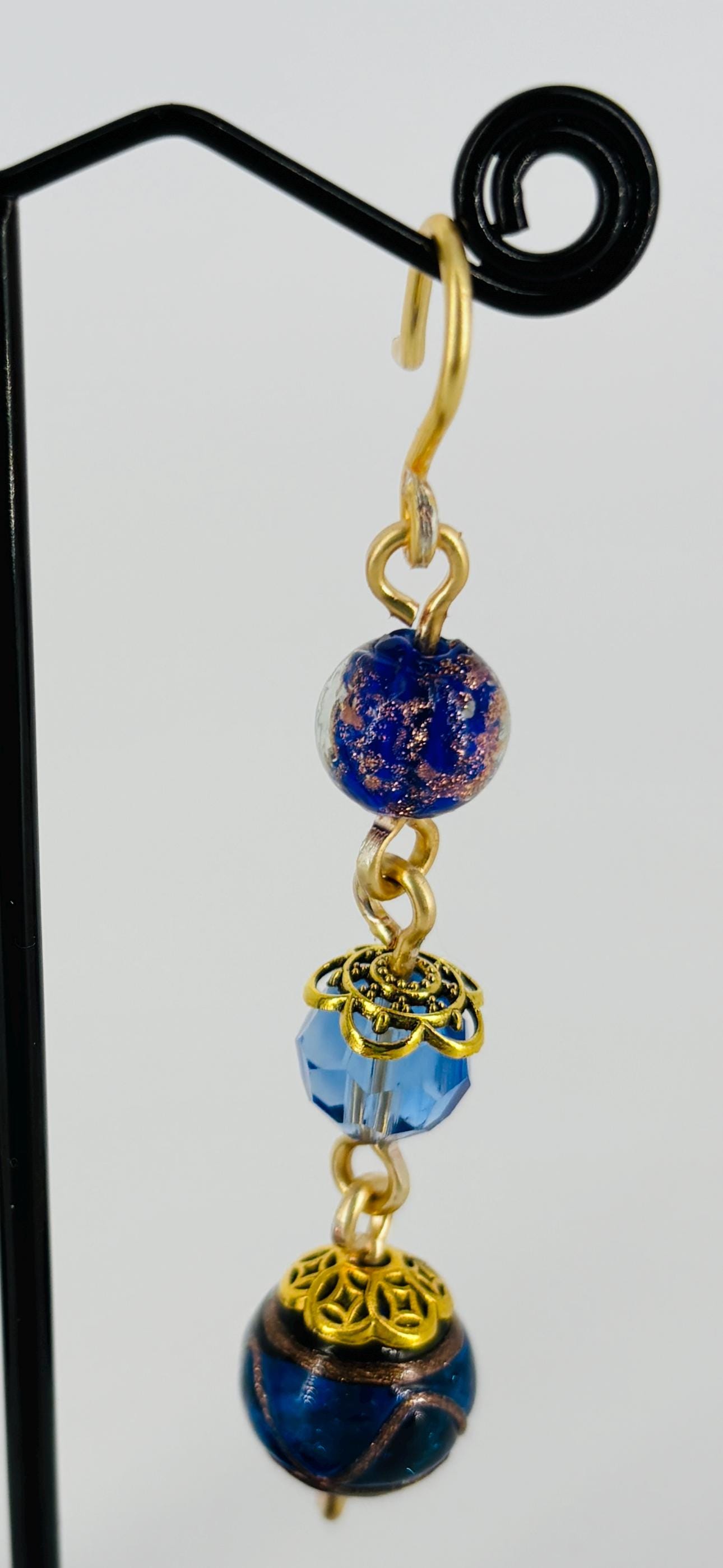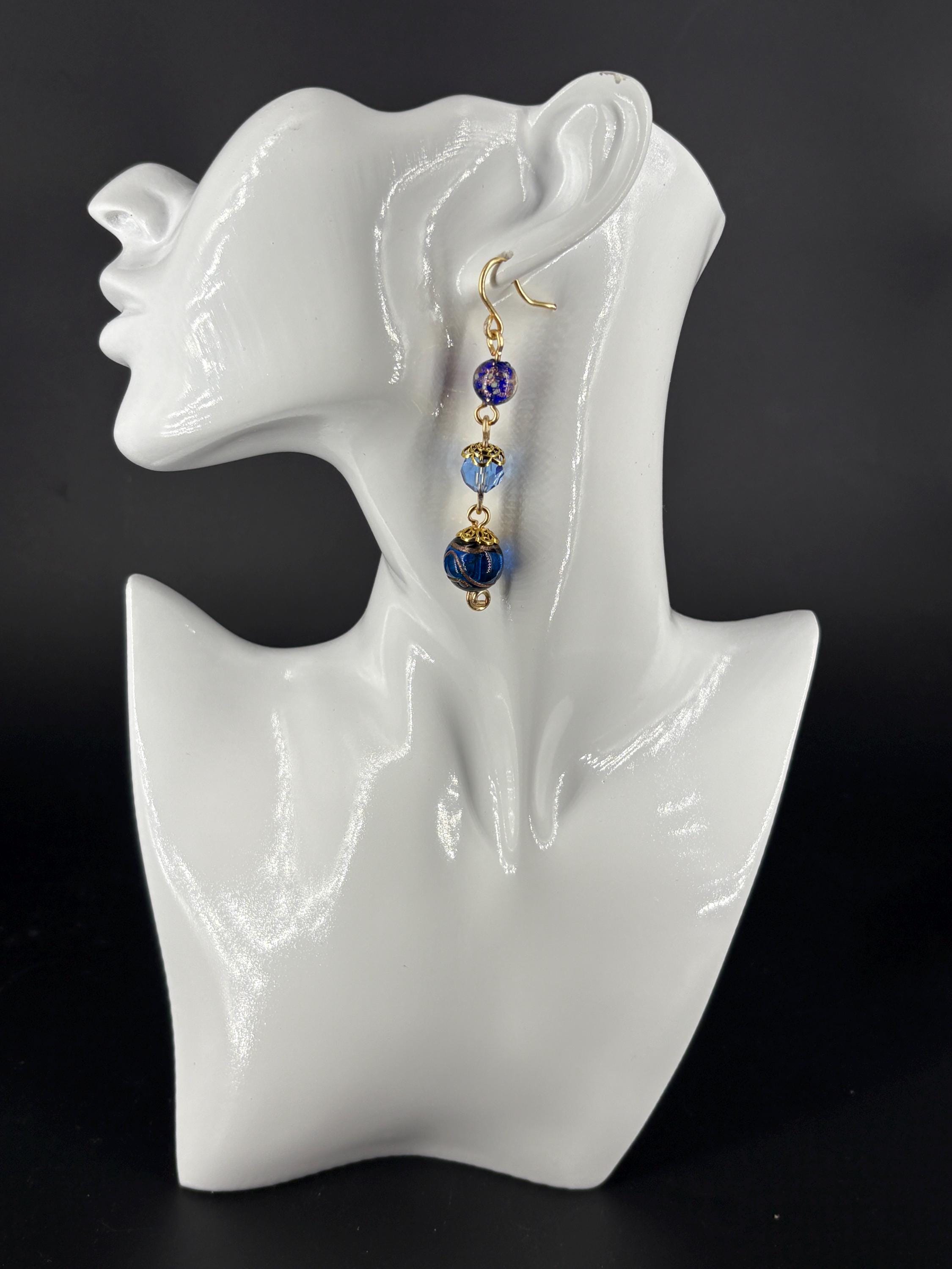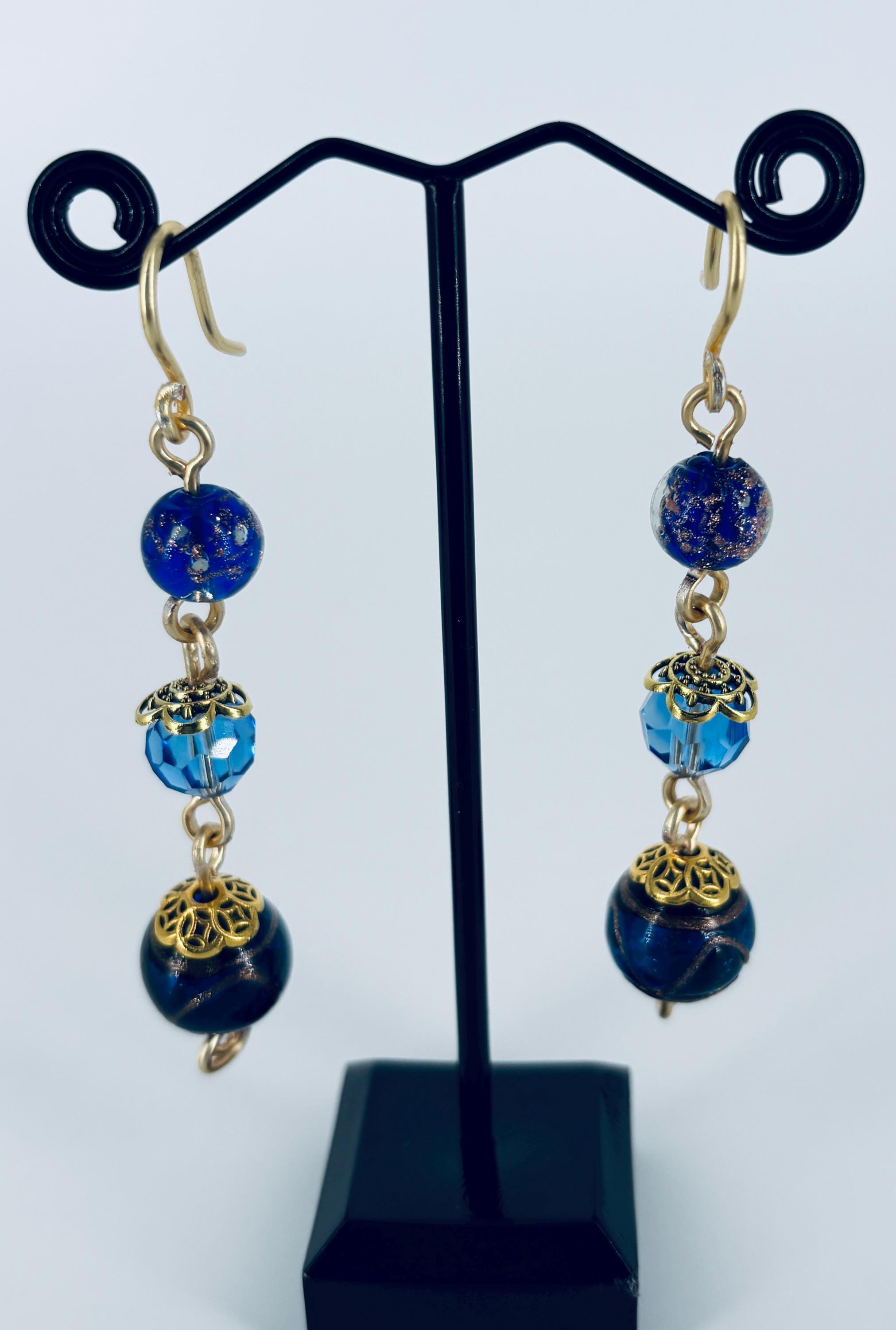 Stunning and unique earrings, made from Vintage Czech glass beads, Drop from ear wire to end 8cm