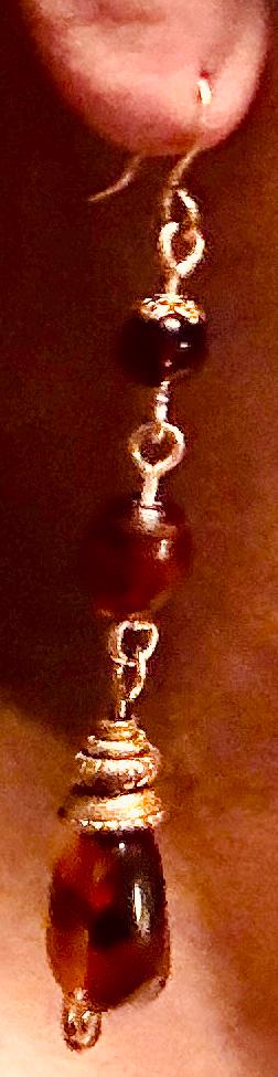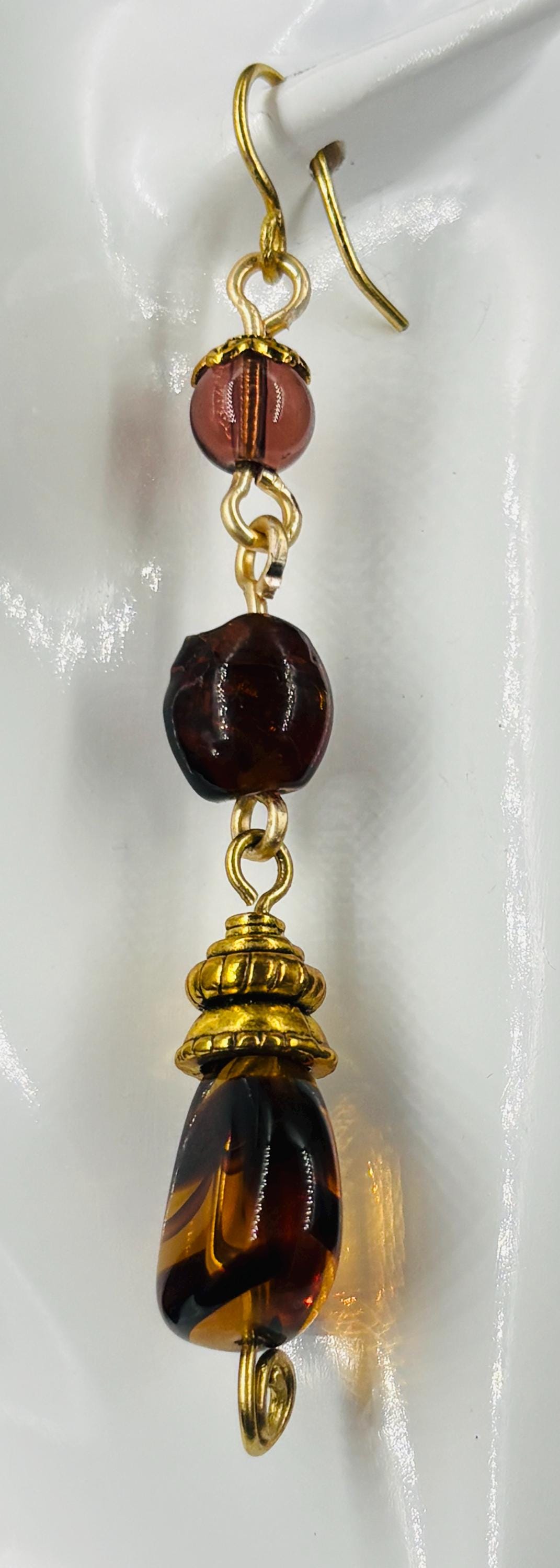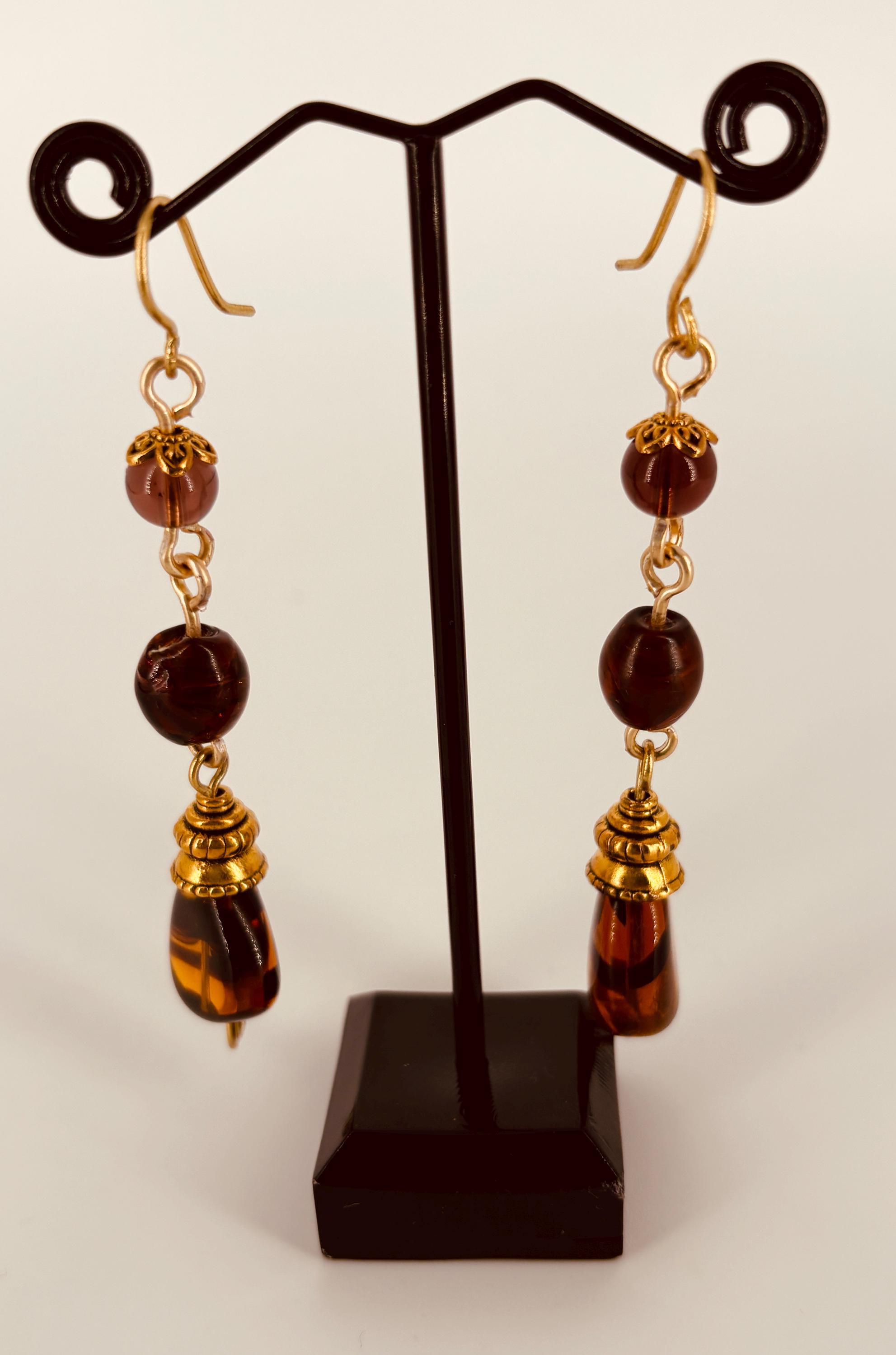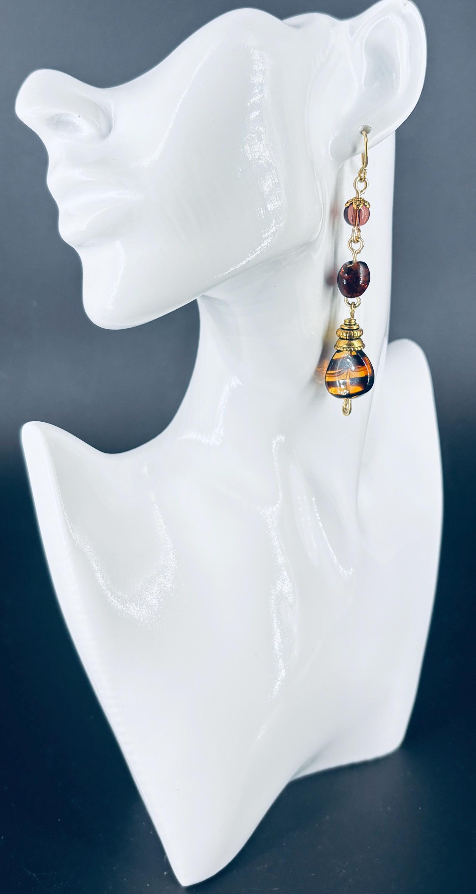 Brown and gold statement earrings. Drop 9.5cm from ear wire.