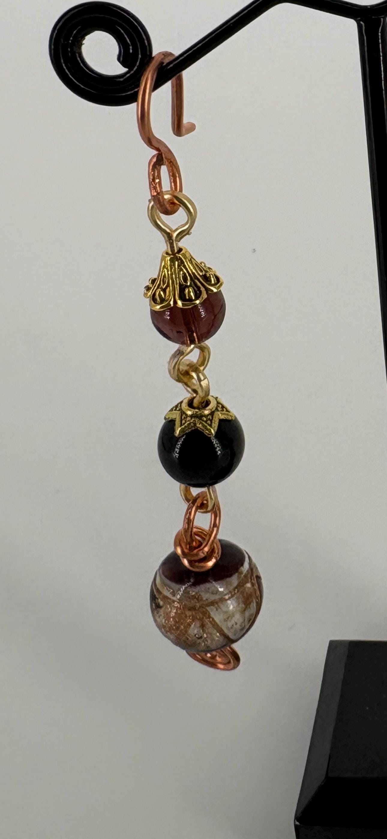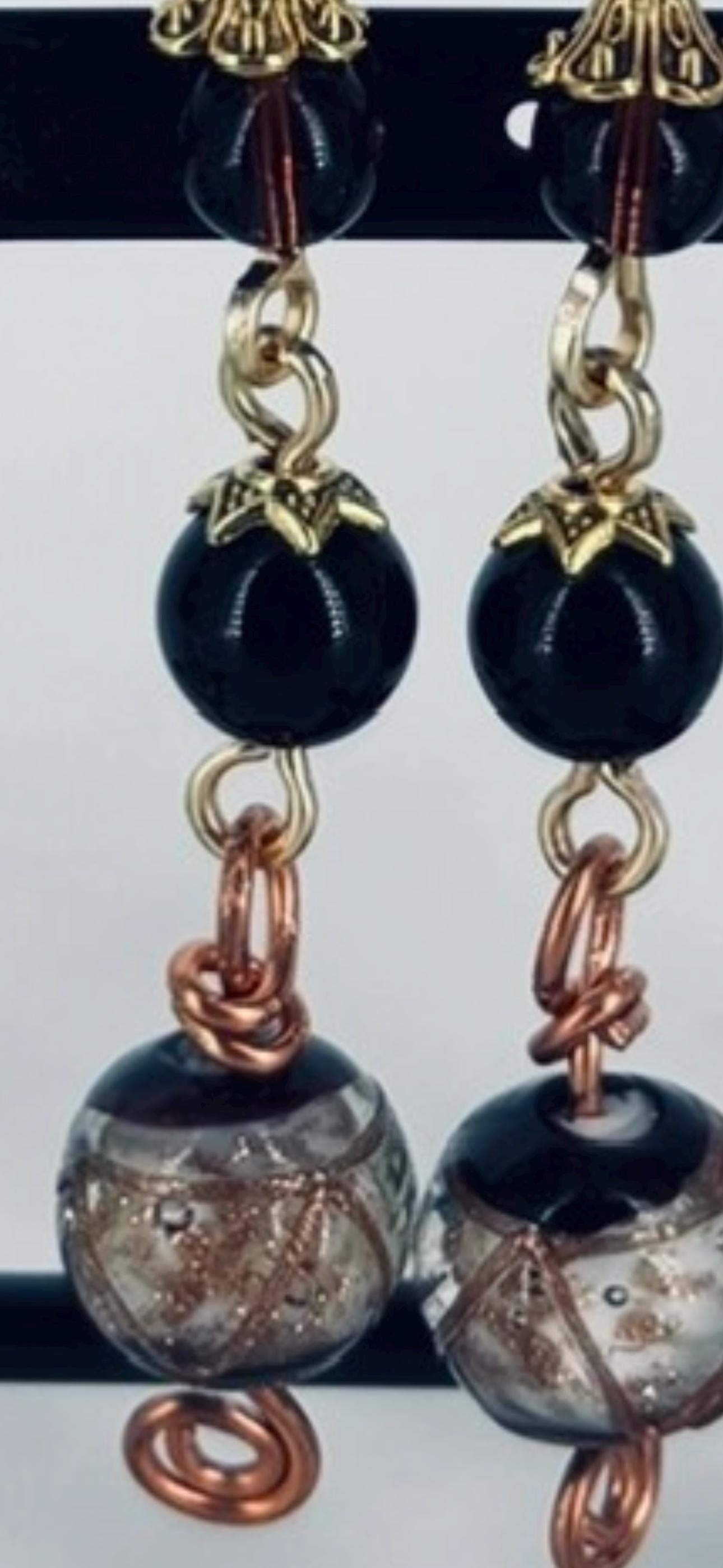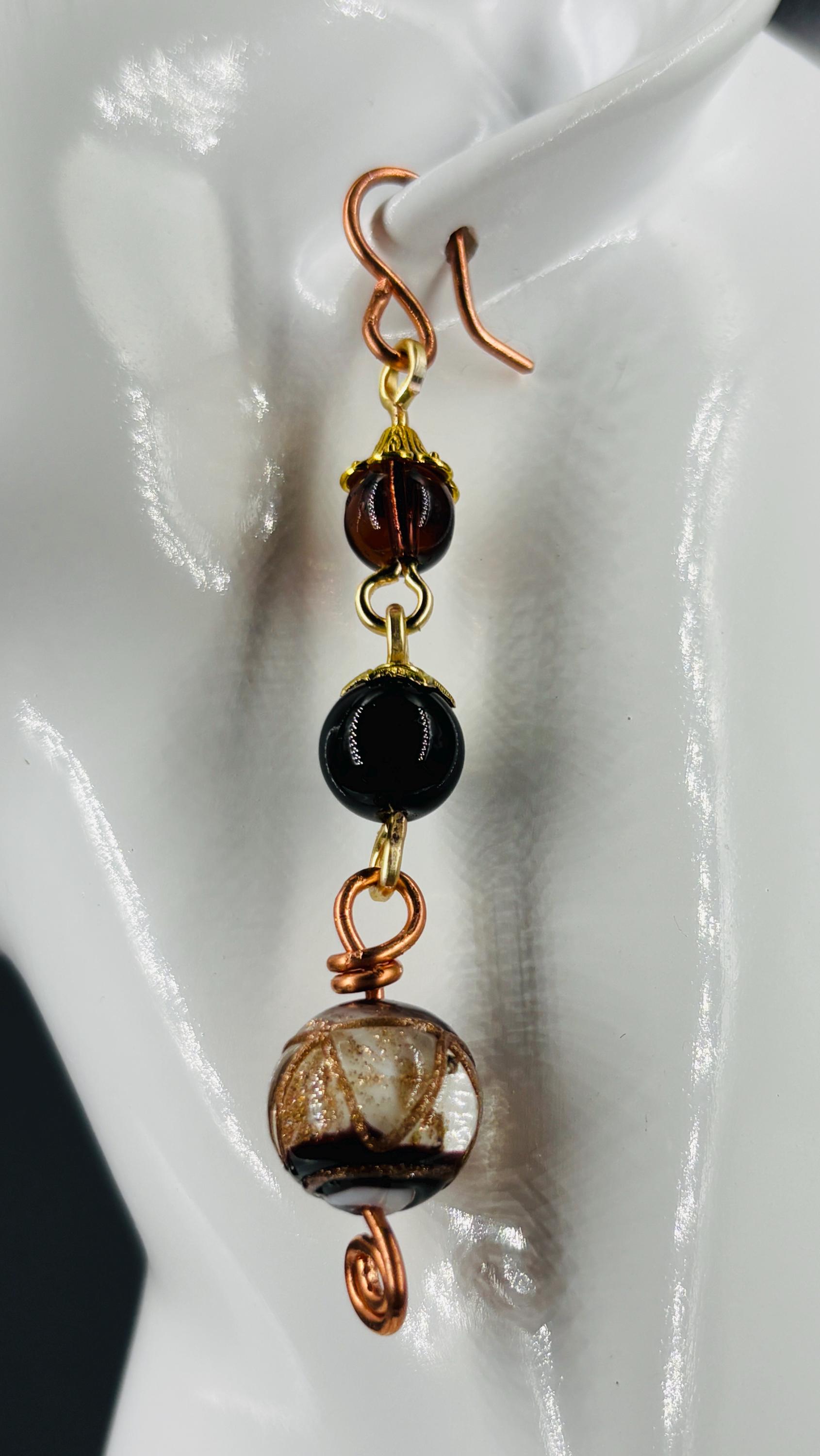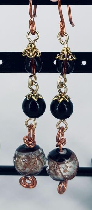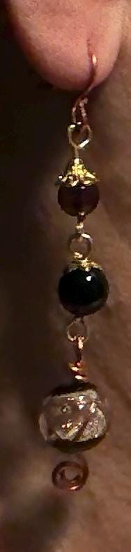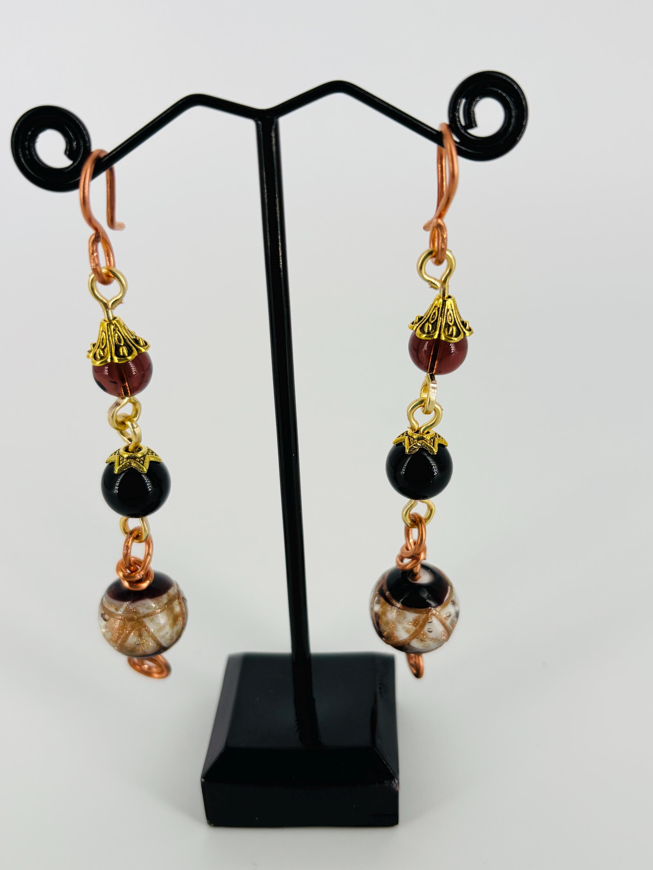 Striking "event" dress-up earrings made from vintage Czech glass beads. Drop 8.5cm from ear wire to end.