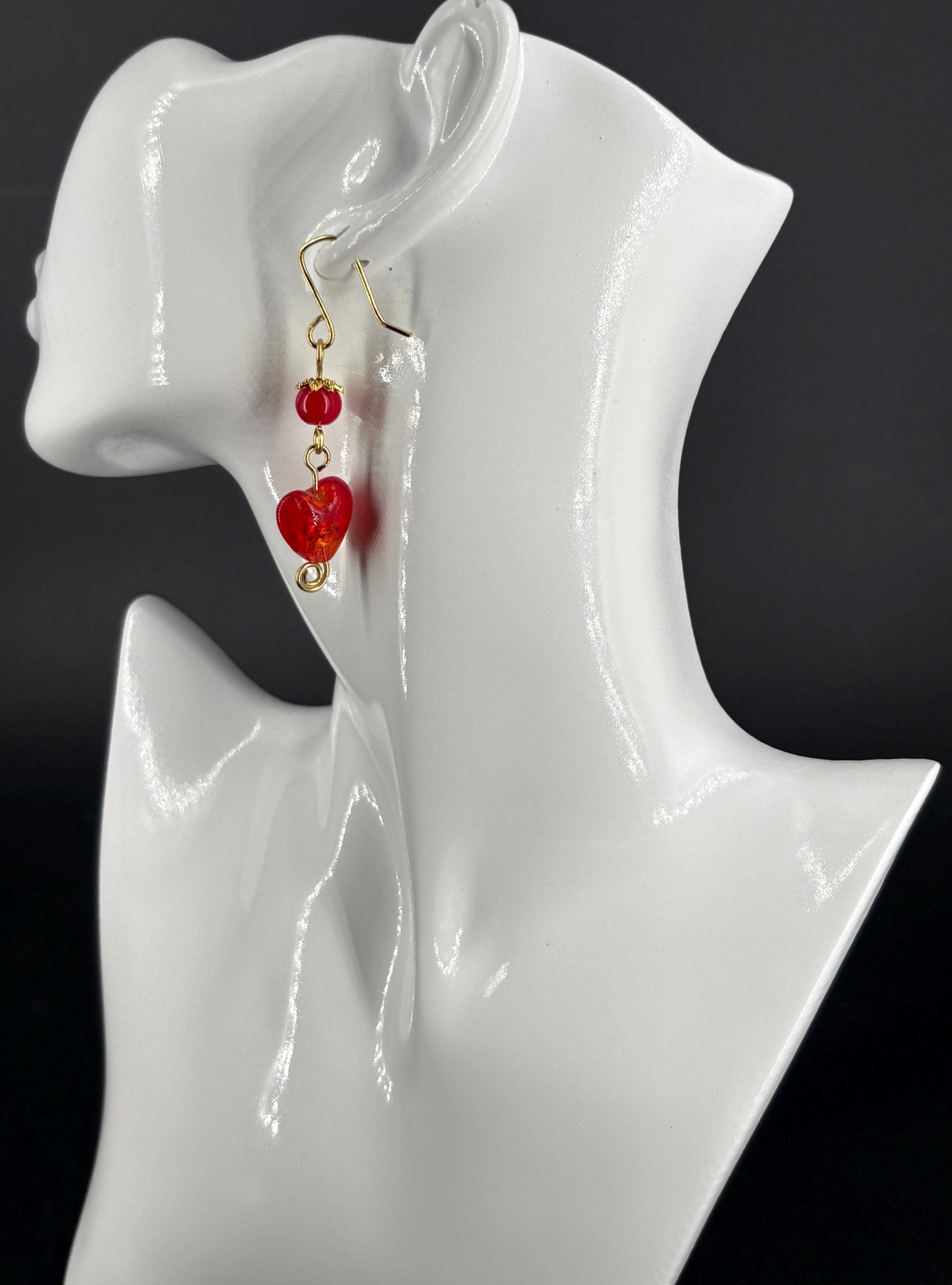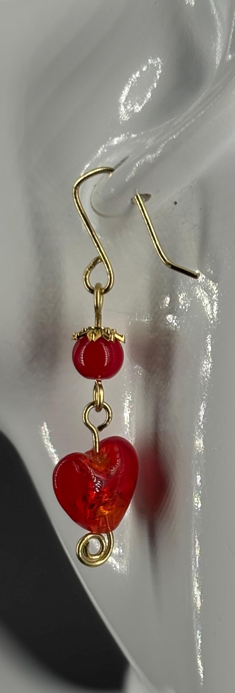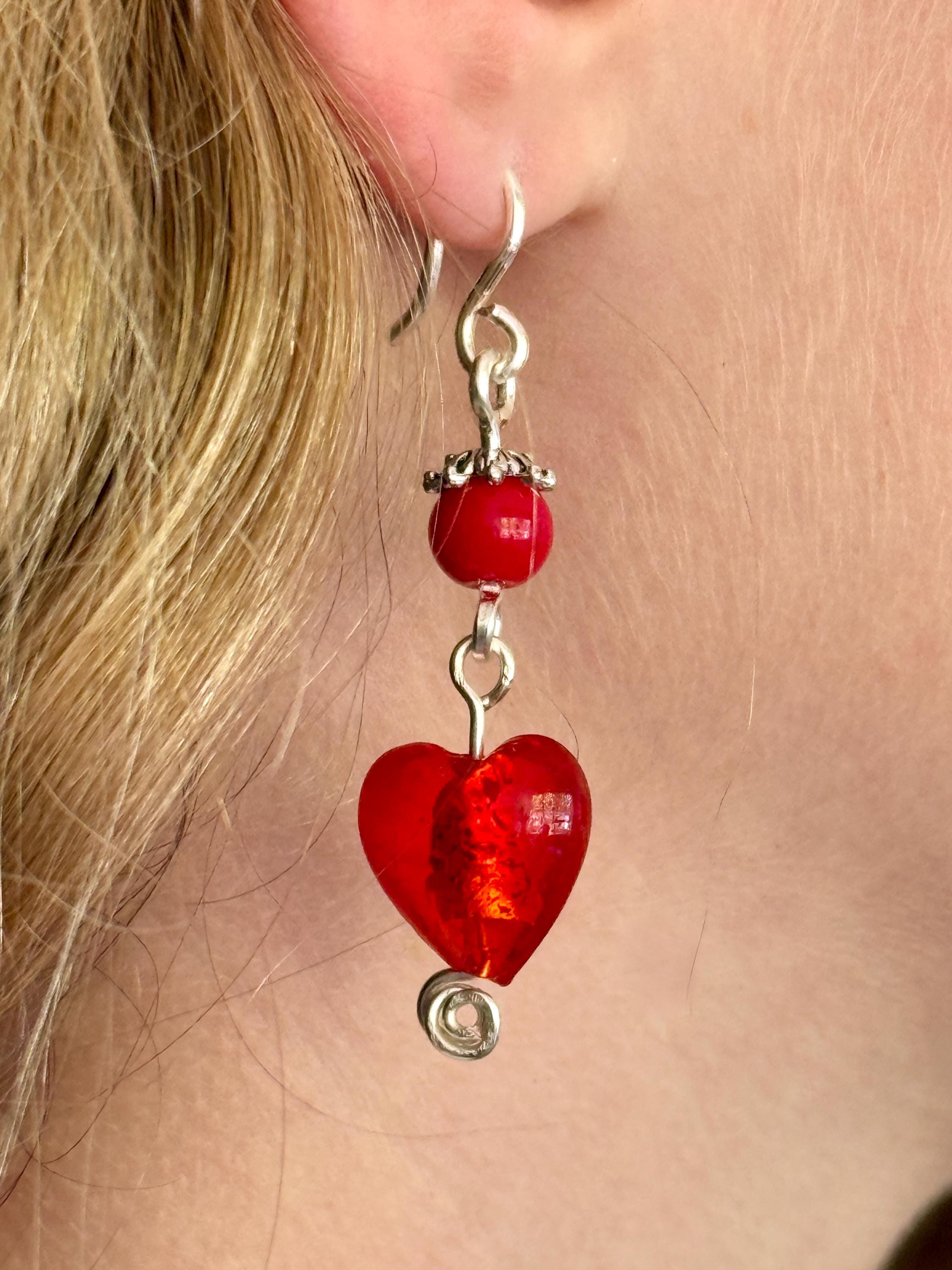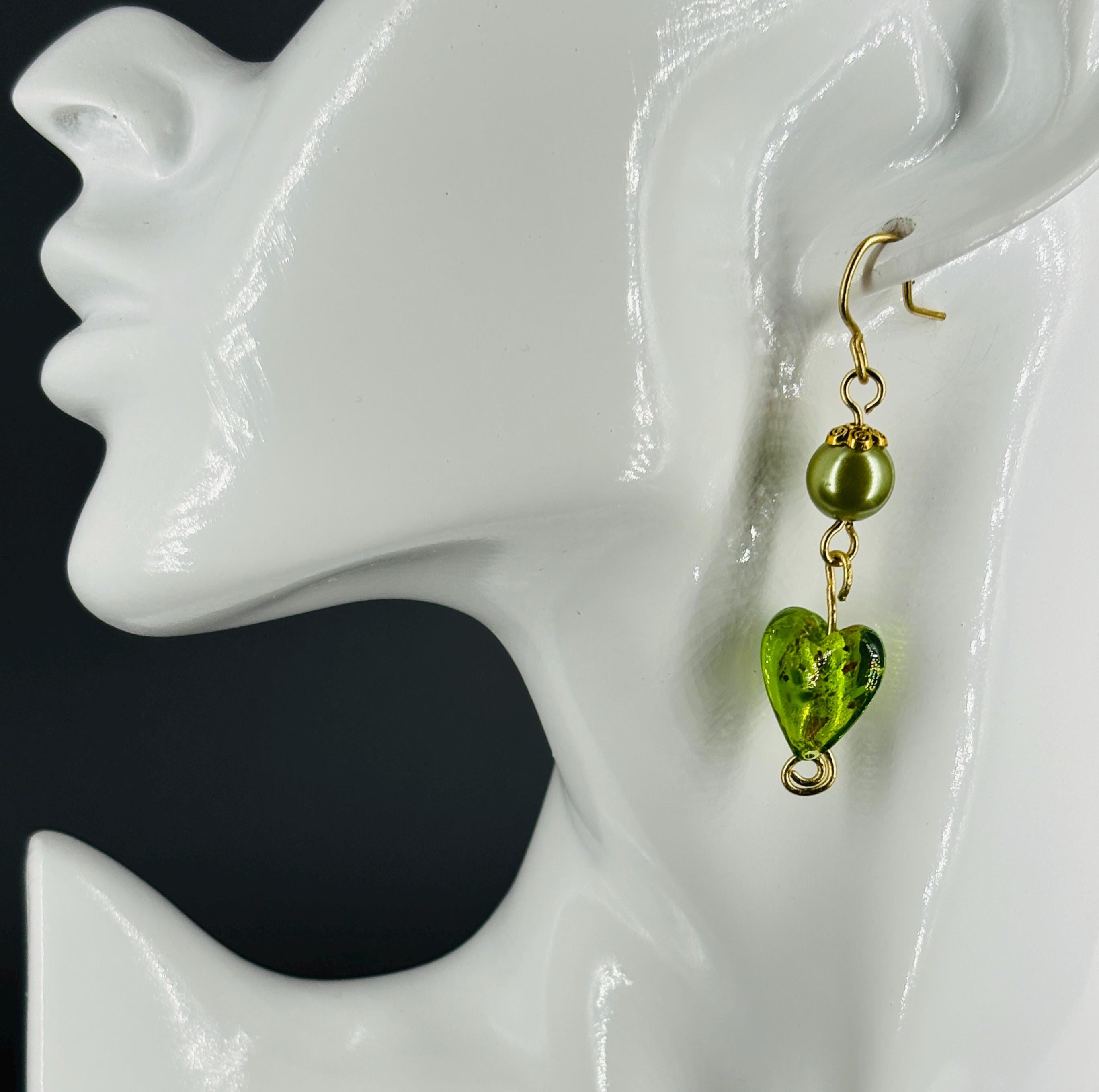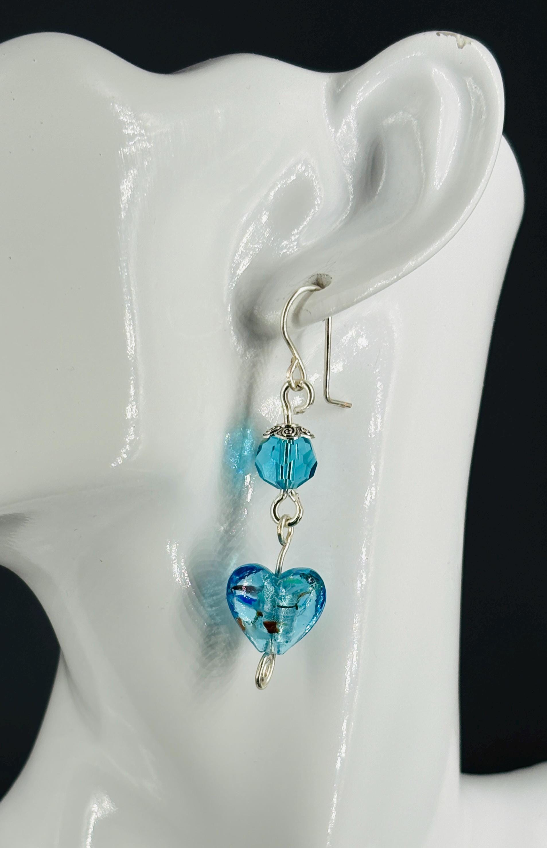 Glass heart earrings in six colours with either silver or gold plated wires and elements. A pair to match every outfit and occasion. LIGHT GREEN, LIGHT BLUE, PURPLE, RED, CLEAR/WHITE, GOLD.