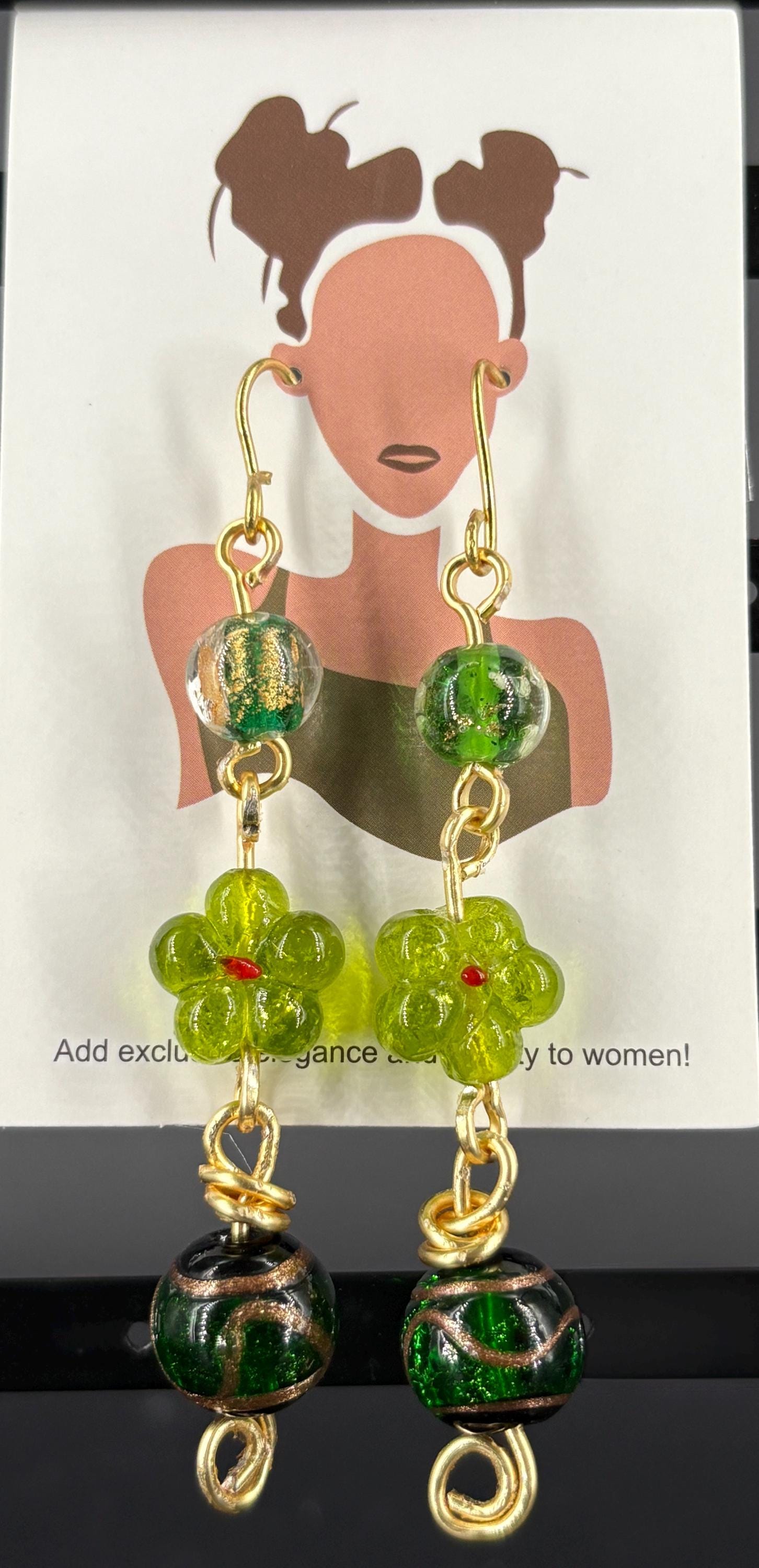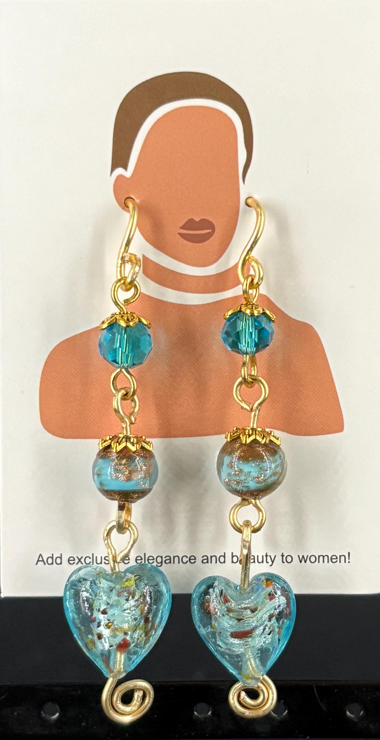 Pack 4: Light green flower 2 tier; Brown & black stripe 3 tier gold wire; Clear crystal hearts 2 tier; Pink, pinky green, large light turquoise green oval 3 tier earrings. The VIDEO is PACK 4.