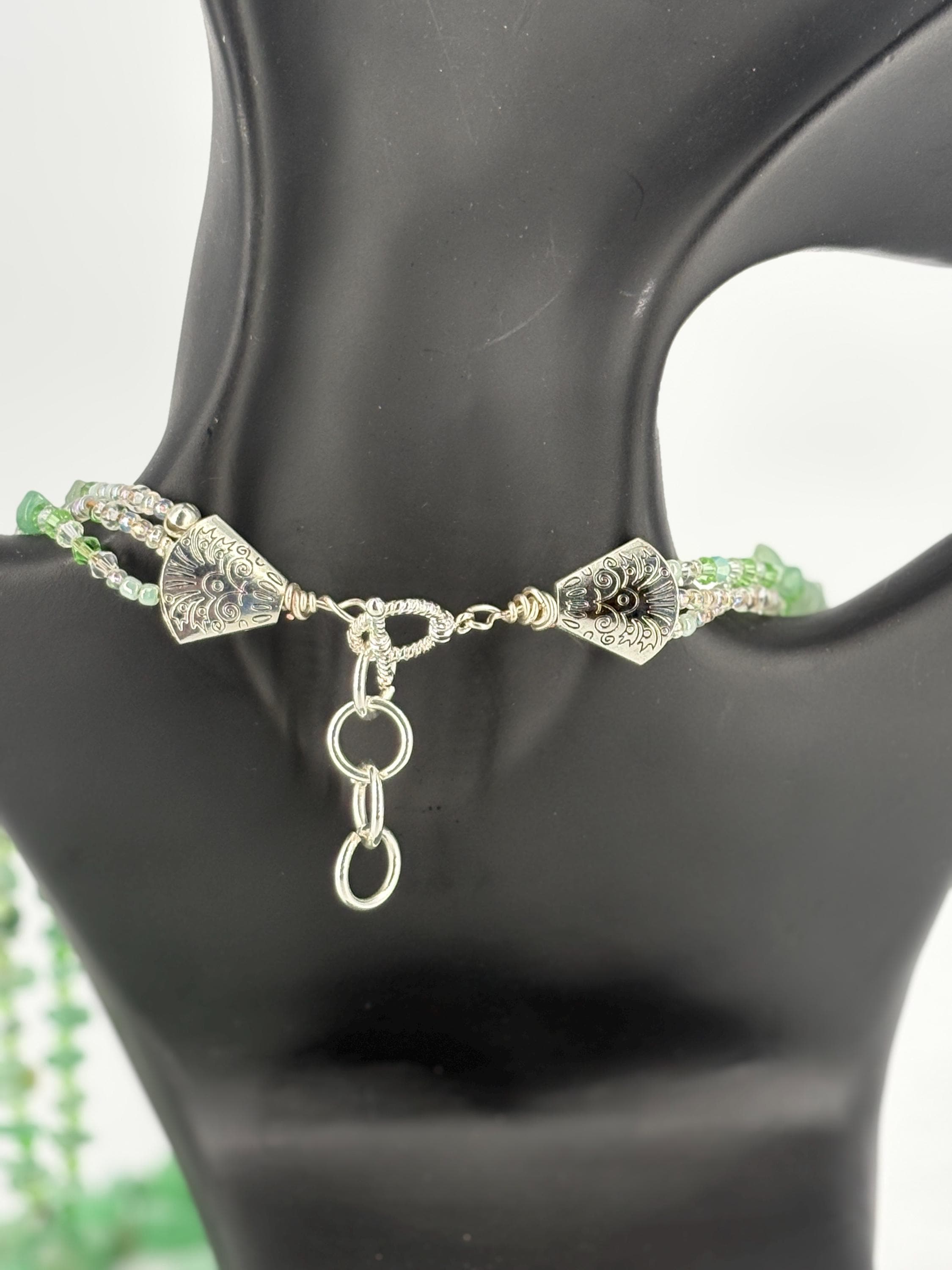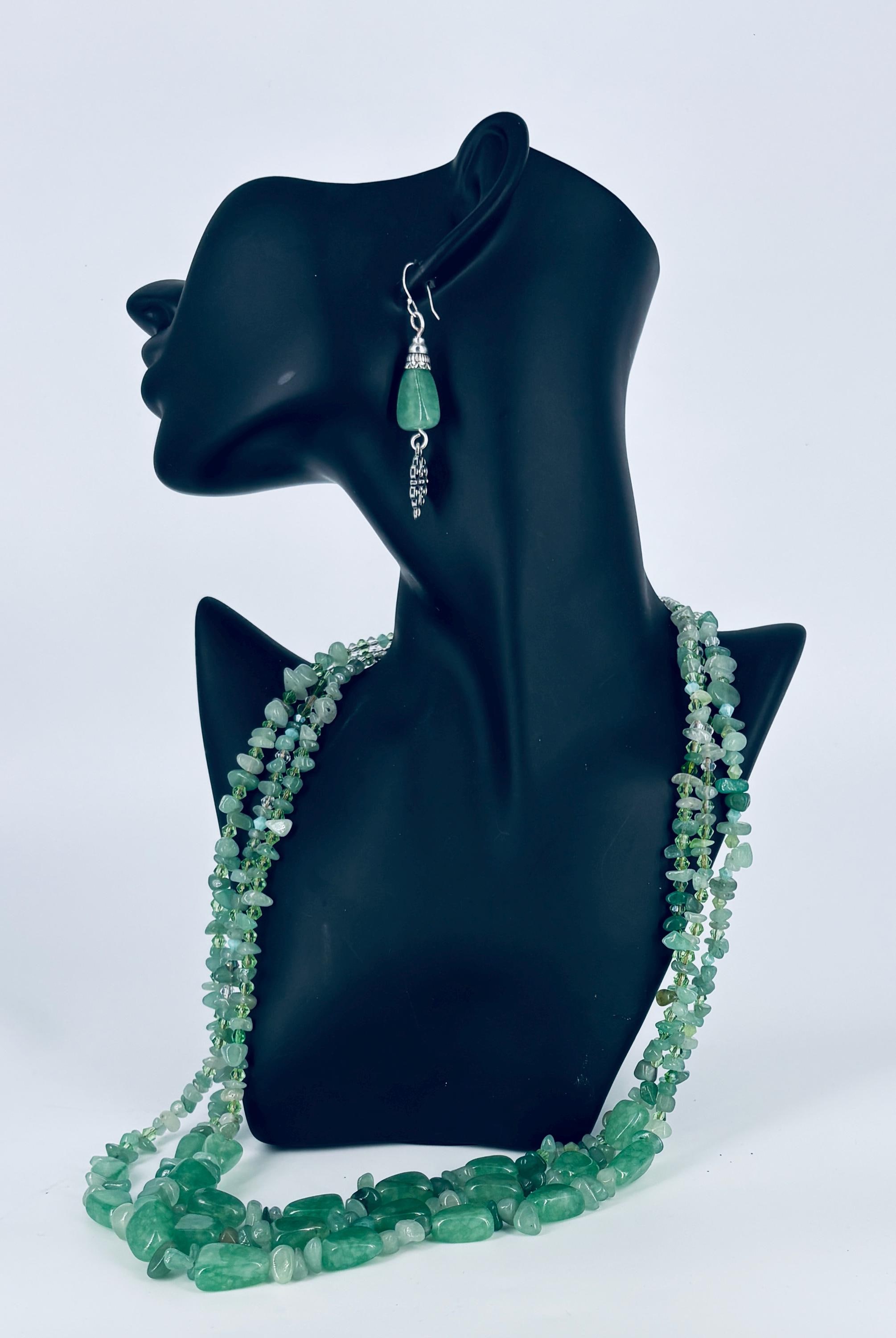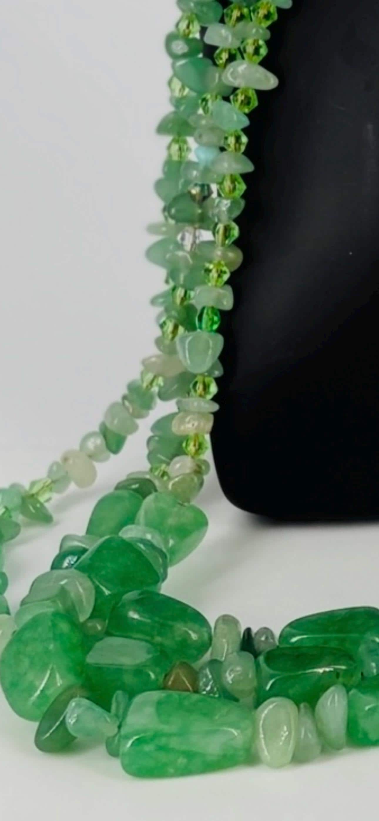 Green turquoise and aquamarine are the colours for 2026. This Adventurine (green quartz) gemstone chip and bead necklace fills the brief of one of the biggest jewellery fashion trends this year. Length 66cm (26 in) extends to 70cm (27.5 in).
